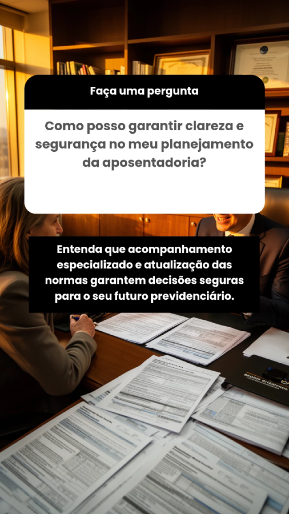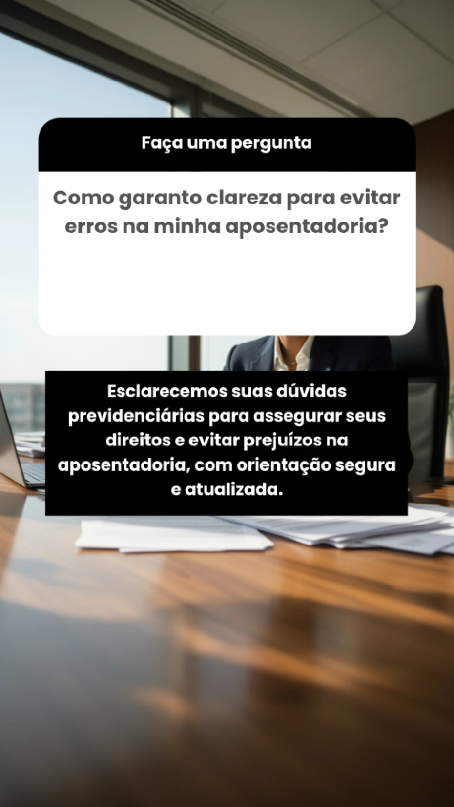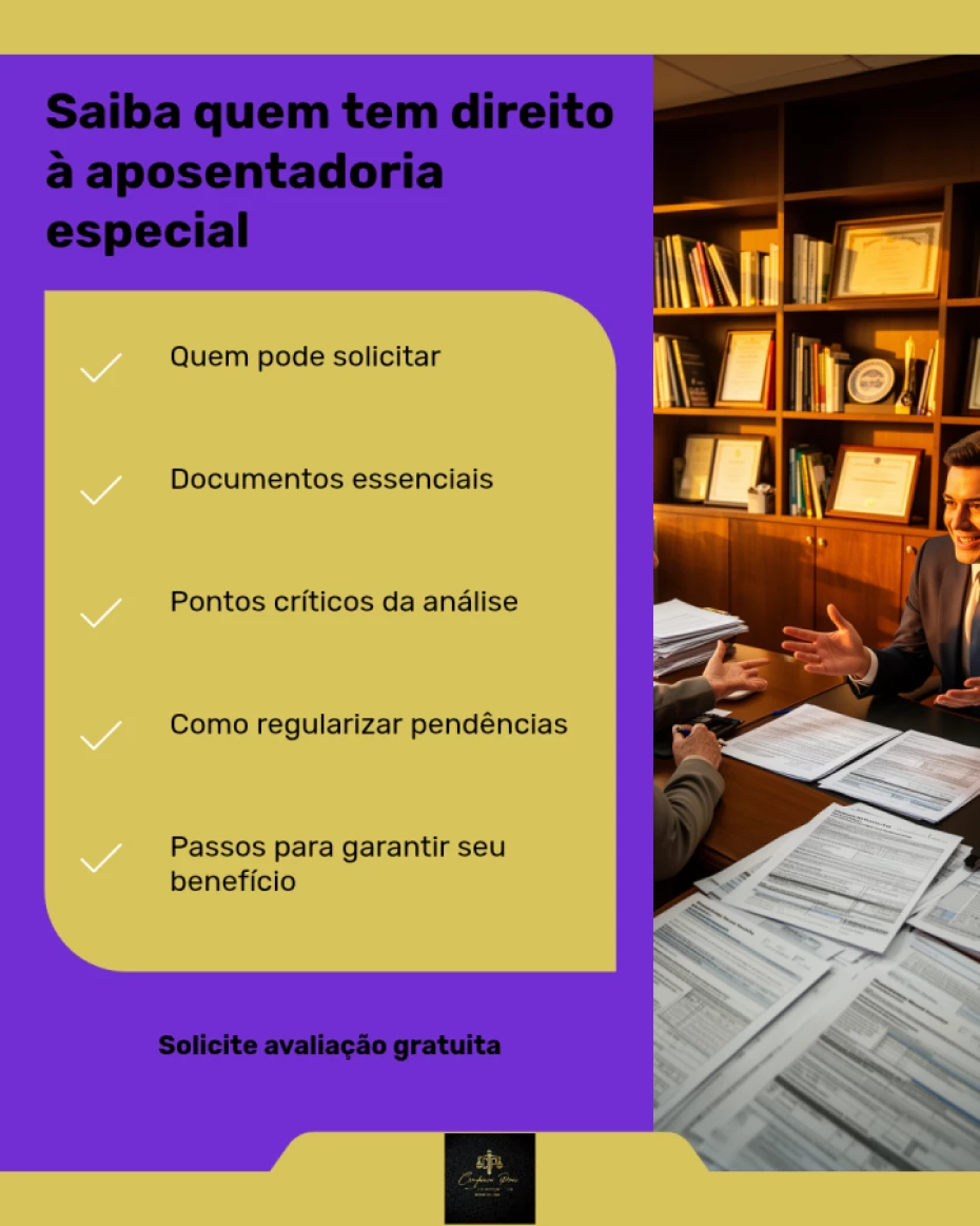 Não realizamos consultoria ou assessoria jurídica. Nosso trabalho é voltado à orientação e apoio administrativo em processos previdenciários.